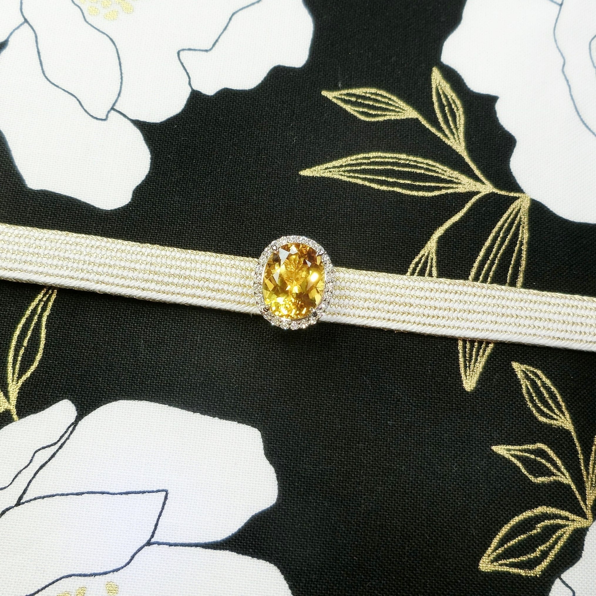 こちらは私、管理人がどうしても作りたかったレモン~山吹色、辛子色系の大きな輝く宝石の帯留めです。