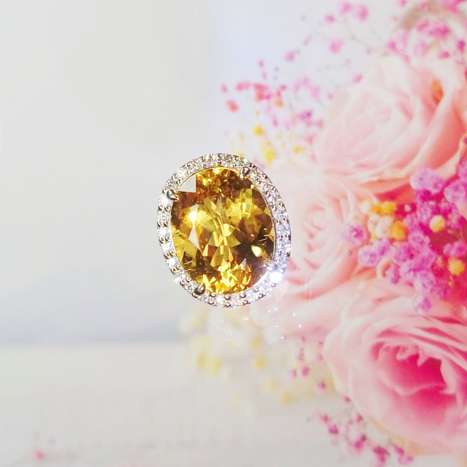 アクアマリンと同じ組成なのですが、さらに鉄が酸素と結びついたことで黄金色を帯びた、酸素が火付けに必要なように「目覚めの光」を象徴する宝石なんですね。