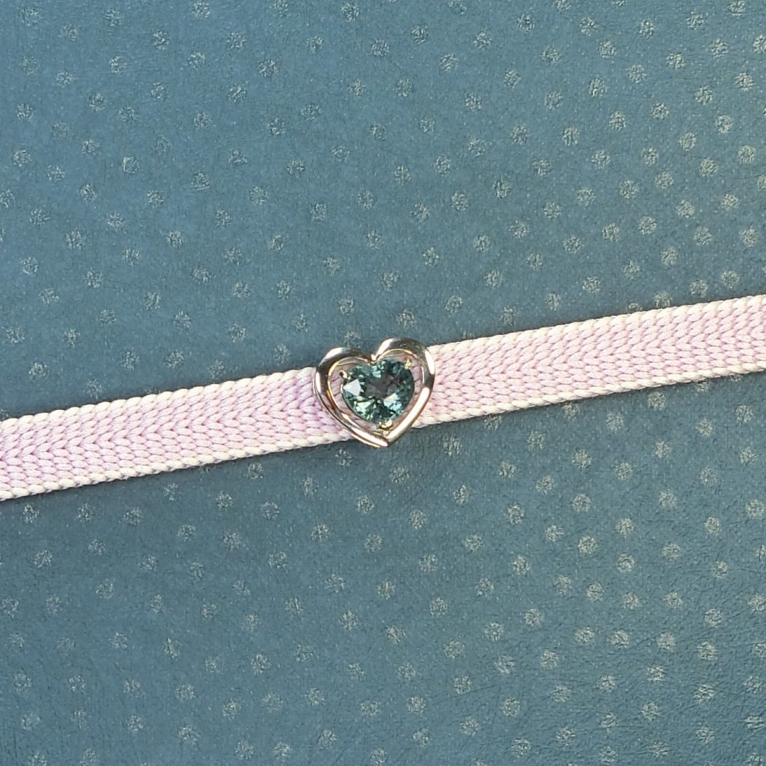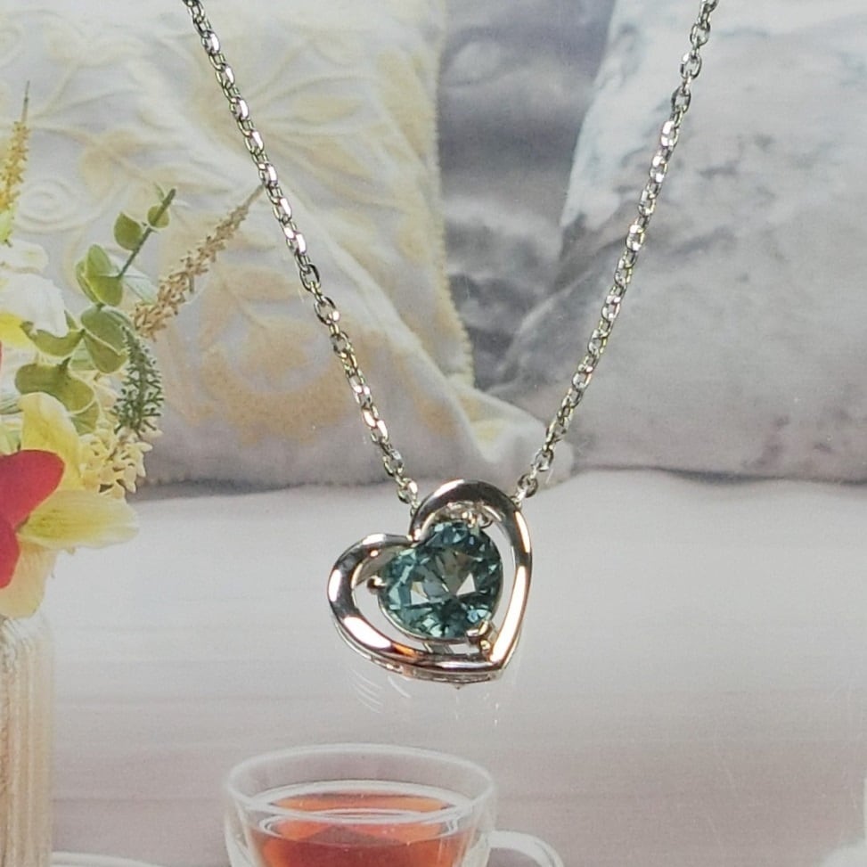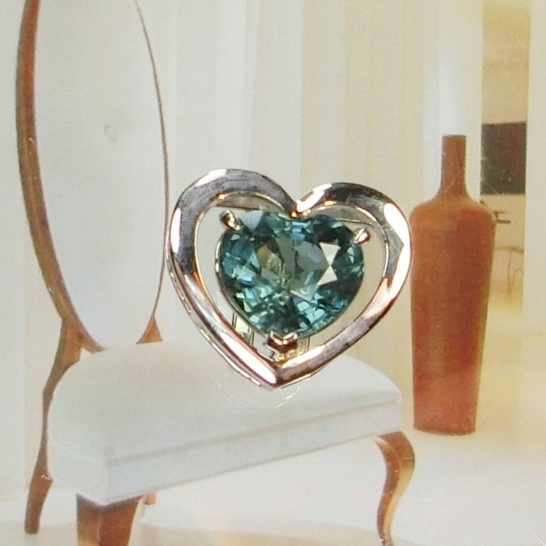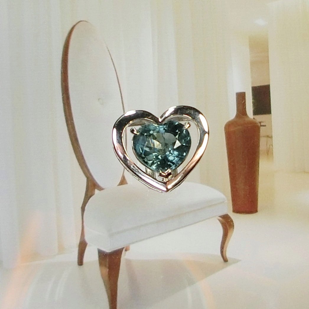 画像の宝石はブルーグリーンのスピネル1.8ct。横約8㎜のハートの宝石です。
