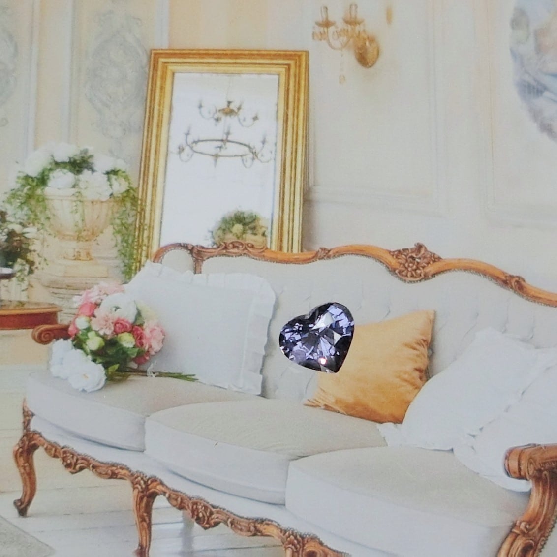 そして、このスピネル、ハートカット×高彩度パープル×1.6ctという非常に貴重な組み合わせですが、まさに神社の猪の目ハートを思い出すような、クラシカルな印象と繁栄の力。それは、ベトナムのルックエンのとても安定した古代地層の中で、5億年の時をゆっくりと時間をかけて冷却されたことによって、高彩度・高輝度なスピネルが育てられたんですって!本当に育まれた結晶は、まさに宇宙と地球の結晶なのですね。