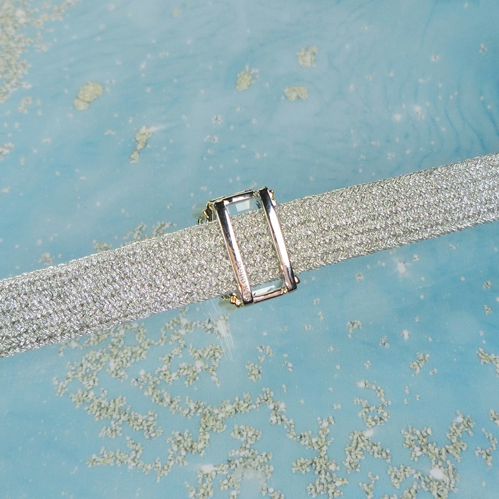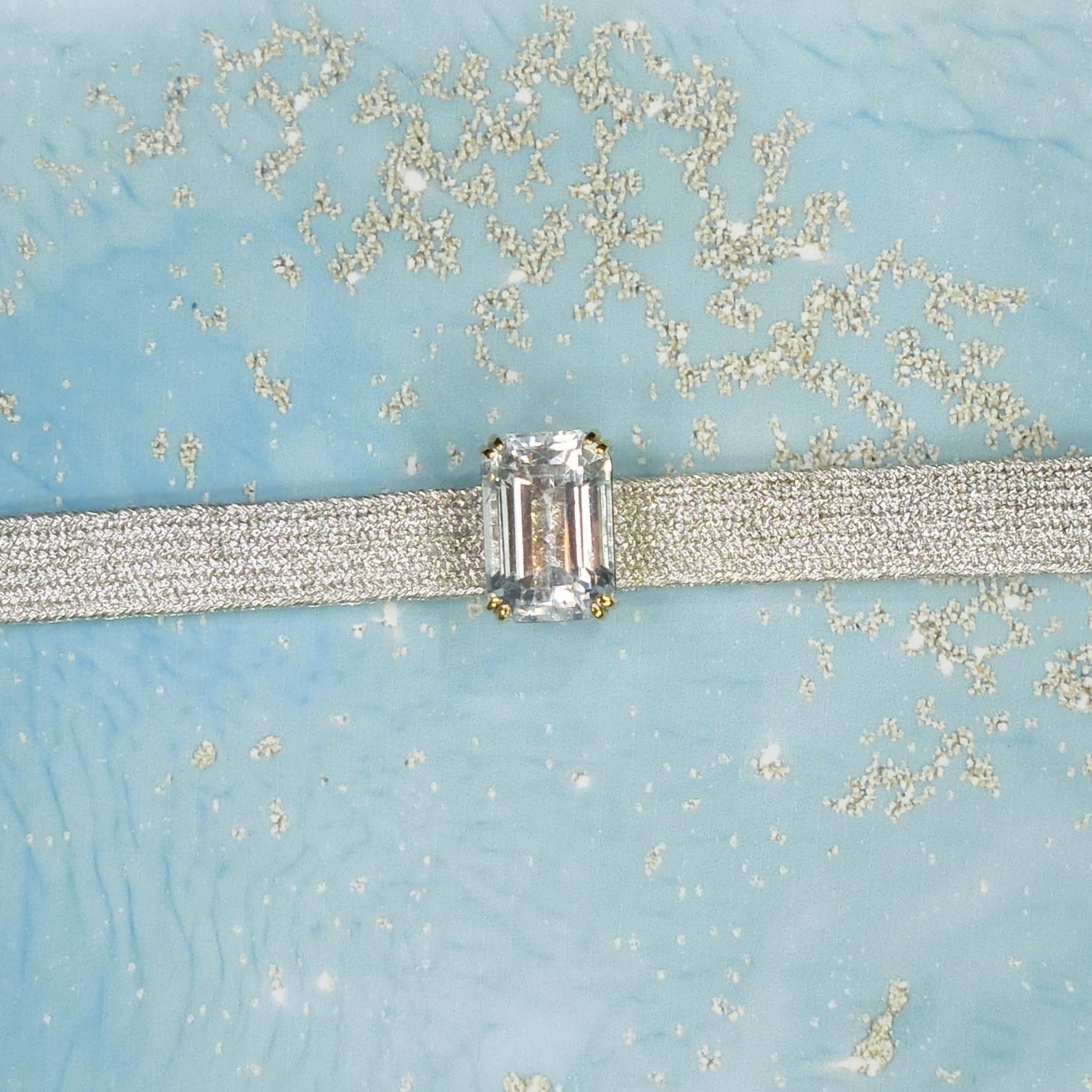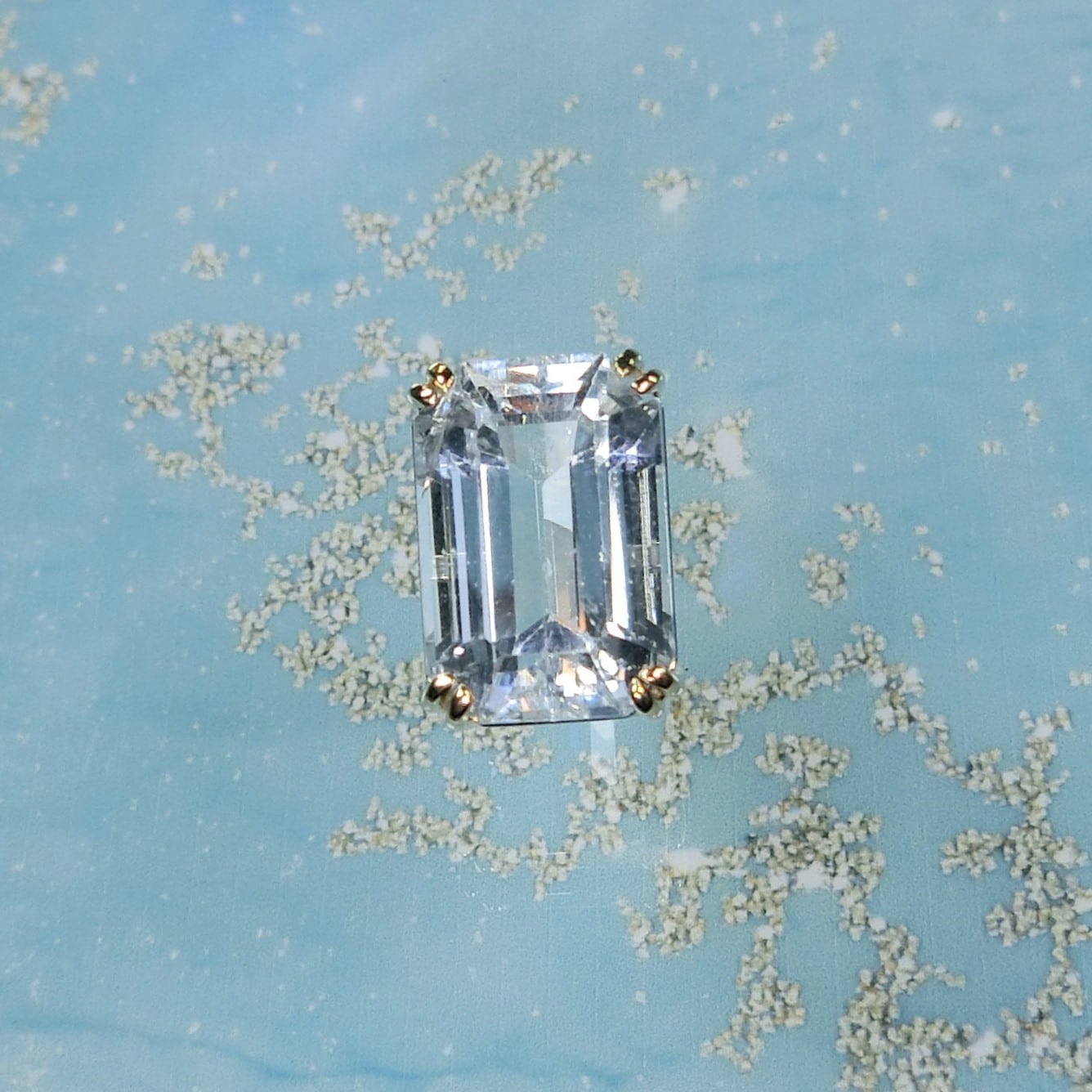 こちらは水色アクアマリンのもの。優しい水色の光を閉じ込めたよう。